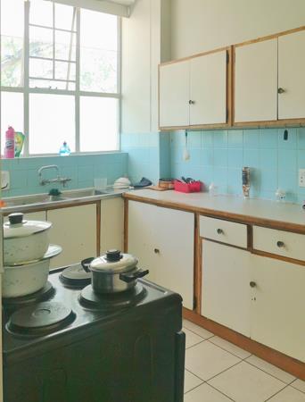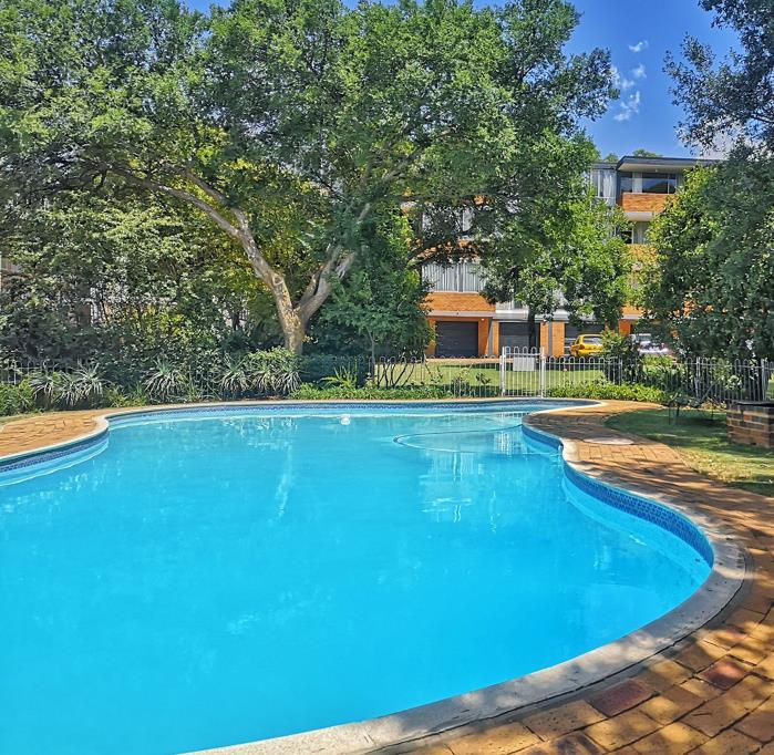 The kitchen has ample cupboard and counterspace and space for a single door fridge. Spacious lounge and dining area (parquet flooring). The lounge leads out to a covered balcony where you can enjoy stunning views of the communal gardens. Both bedrooms have wooden laminate flooring and BICs. The main bedroom is really, spacious with tons of natural light cascading in through the large windows. The apartment has one bathroom with a bath, basin and toilet.