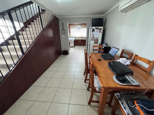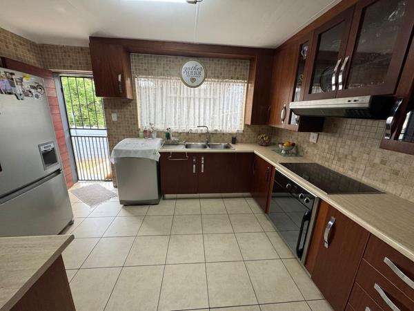 Outdoor living is catered for with a covered patio or terrace, an ideal space for relaxation, adorned with potted plants and tiled flooring. The property also boasts three garages, complemented by a paved driveway and covered carport, offering ample secure parking and storage for vehicles. Enhanced security measures are integrated throughout the property, including security gates, window bars, CCTV, Alarm system and electric fence, contributing to a safe living environment.