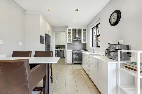 Step inside and you are greeted by a light-filled open-plan living area that flows into a beautifully appointed kitchen with modern cabinetry and elegant tiling. To the side, a private scullery connects directly to the double garage. This thoughtful layout keeps your main living areas neat and uncluttered.