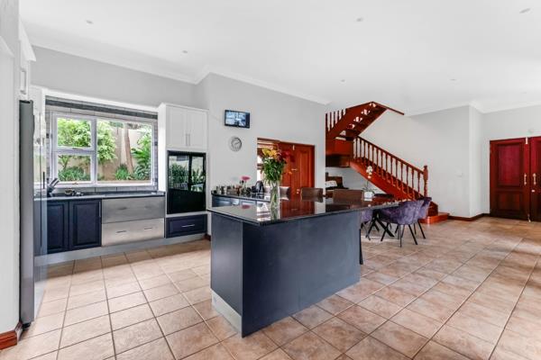 The low-maintenance garden is ideal for family life and children''s play. Security is paramount with electric fencing, alarm beams, and CCTV cameras. The property includes three automated garages plus ample open parking and staff ablutions.