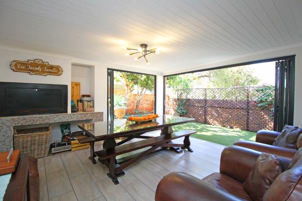 Whatever the weather rain, cold, wind or sunshine - utilize your braai area and fire place with stack doors that open to your manageable garden.