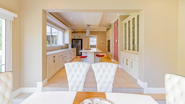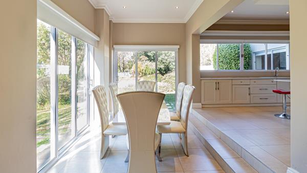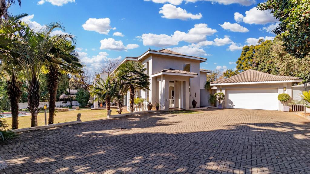 On Show today 11-12pm. Offers from R5,500,000 - Seller asking R5,550,000. Tucked away behind bespoke gates and high perimeter walls, this luxurious double-storey home offers privacy, security, and grandeur in equal measure. A sweeping driveway leads you to a striking double-volume entrance, setting the tone for the lavish lifestyle that awaits inside. Step into an impressive entrance hall that flows effortlessly into a stylish guest cloakroom and an expansive entertainment lounge and bar area. Stacker doors open seamlessly onto a dream entertainment patio with a built in braai, complete with a sparkling pool and a beautifully landscaped, level garden, perfect for both relaxed family living with ample space for pets to roam around and elegant gatherings. The open-plan living continues into a sophisticated dining area and a chefs dream kitchen, featuring a central island, electric hob, ceasarstone countertops, and an extraordinary suite of built-in appliances: four eye-level ovens, a microwave, steam oven, and induction oven. A separate scullery with access to the back garden adds functionality without compromising on style