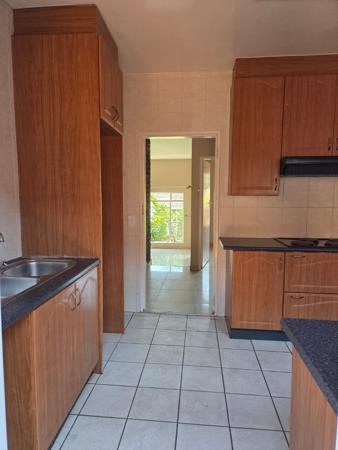 The kitchen offers plenty of counter space and cabinetry, with direct access to a private courtyard. The double lock-up garage provides secure parking.