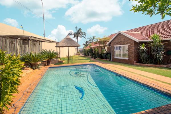 This property also boasts a gas geyser and a water tank with a pump. Externally, the home includes a double garage, three double carports, an enclosed tiled lapa with a built in braai, as well as a separate entertainment area for summer, situated next to the sparkling pool and water feature koi pond. The established garden further enhances the appeal of this residence. Various options are available for prospect buyers.