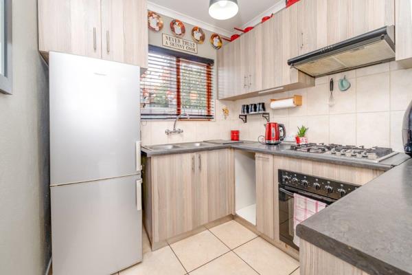 Situated in a secure complex, this home offers 2 bedrooms and 2 bathrooms, a well-appointed kitchen with ample cupboard space, a breakfast nook, gas stove and electric oven.