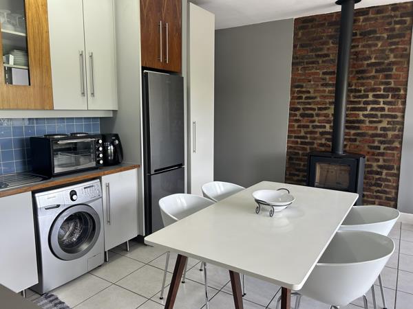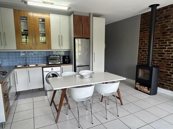 The open-plan lounge, kitchen and dining room with a free-standing fireplace is modern and versatile, which fosters connectivity and flow between living spaces. The kitchen features a sleek functional design, clean lines and ample cupboard space.