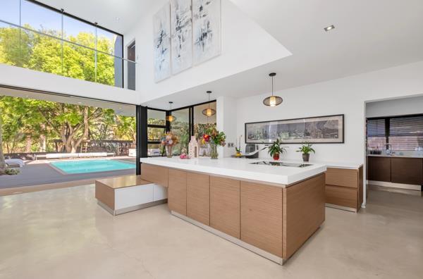 Undoubtedly the most prestigious modern-contemporary residence in Greenside, this purpose-built, architect-designed home redefines luxury living. Set on a tranquil, tree-lined street in a coveted location, it is a symphony of polished concrete, wood, stone, and glass a bold yet harmonious statement of elegance.