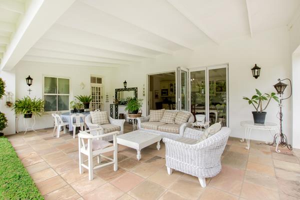 The propertys beautifully maintained, borehole-fed garden ensures year-round greenery. Excellent security includes an alarm system and electric fencing, while generous four-car tandem parking adds convenience.