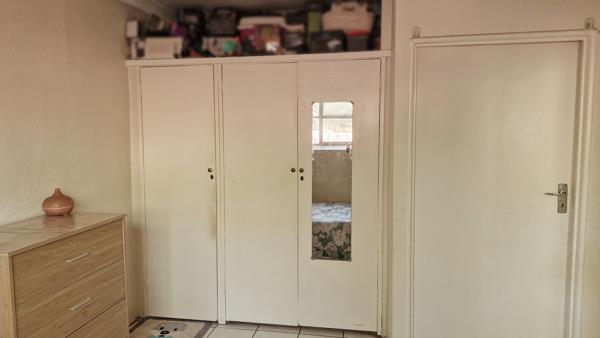 The bedroom has build in cupboards with a bathroom on suite.