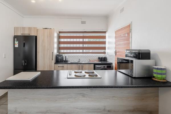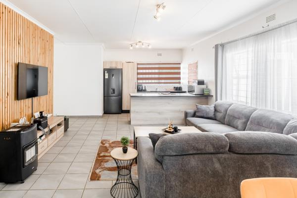 Open plan comfortable lounge, dining room, and modern kitchen.