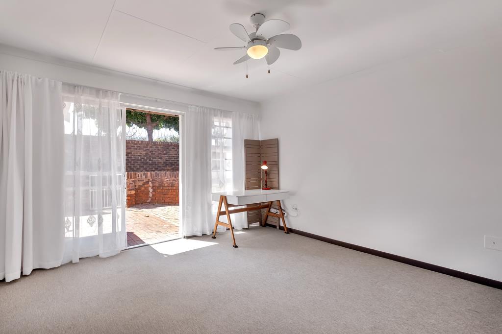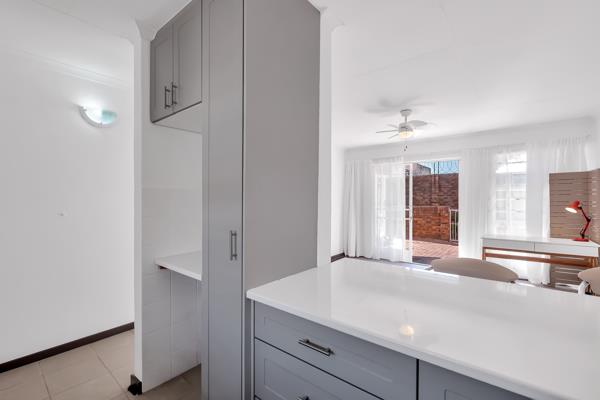 The open-plan lounge and dining area is light and inviting, flowing seamlessly onto a private paved patioperfect for morning coffee or relaxed entertaining. The modern kitchen features a glass-top stove, electric oven, and ample cabinetry, with space for a fridge and an 1 additional appliance.