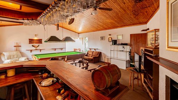 The kitchen opens onto a private, open courtyard. Upstairs, a breathtakingly large entertainment lounge where a solid character bar and billiard table await, extending to an enclosed gym with great light and views. Bedrooms are spacious, with the main en-suite featuring a pampering Jacuzzi bath. Bathrooms feature a bath, a shower, or both. Outdoors, a large double garage with good flooring, a borehole, and staff accommodation complete the offering. Lindens value keeps rising. On application, there is an opportunity to explore home business options, perhaps subdivision, or other ventures. Exempt from the over-50 age restriction.
