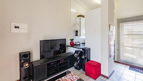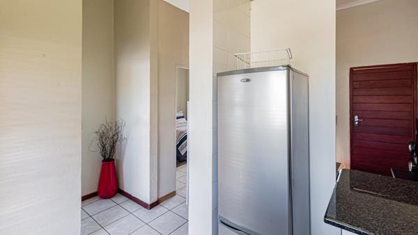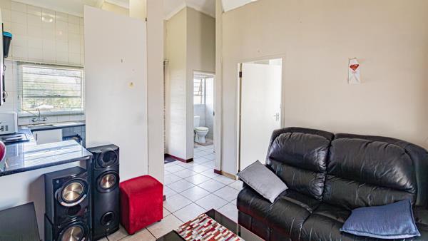 Has a cosy lounge and a kitchen with space for one appliance and a single-door fridge.