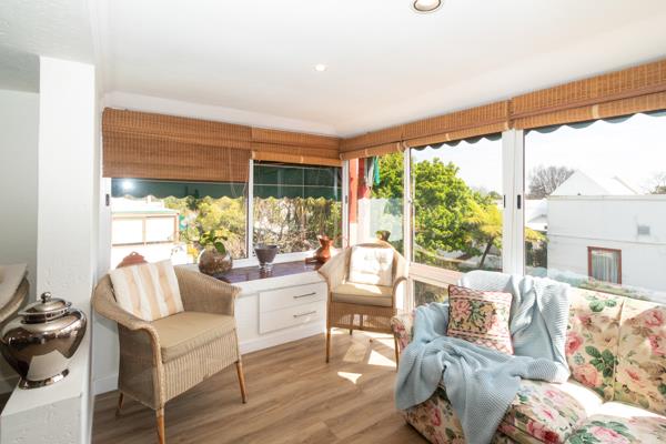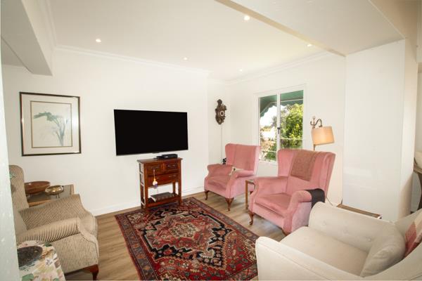 The open-plan lounge/dining room has a TV lounge off from it and the enclosed balcony is incorporated into the living area to offer a sunny nook to enjoy the views and the wonderful flowing stream below.