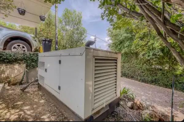 Outdoor amenities are a standout feature, including a double garage, a covered carport, and an extensive paved driveway that ensures plenty of parking space. For uninterrupted living, the property is equipped with a large backup generator, while electric fencing and security bars on windows and doors add valuable peace of mind.