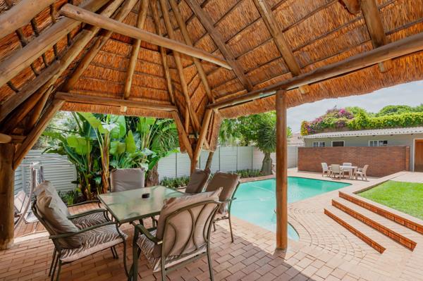 Outdoors, youll find a sparkling pool and built-in braai area, ideal for entertaining. A storage room and staff quarters with bedroom and bathroom complete this well-equipped property.