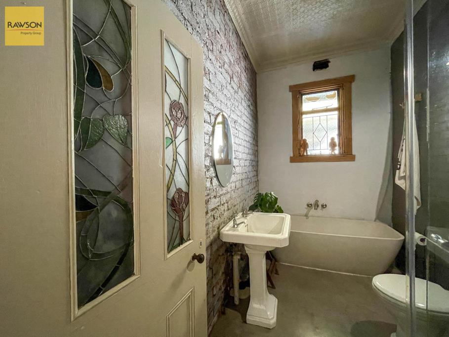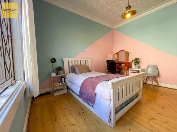 Upon entering the home from the rear, you are welcomed into a charming passageway featuring classic wooden flooring, pressed ceilings, and clean white walls. The first room on the left is a bedroom boasting a large aluminium window, glass door, and wooden floors.
