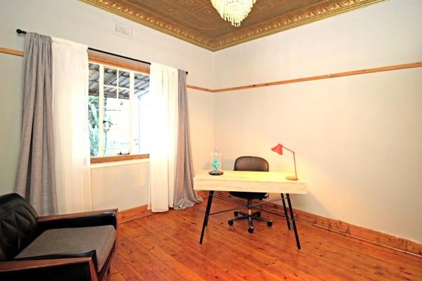 Large rooms. Lounge. Recently renovated kitchen/dining room. Scullery. Pantry. Enclosed back stoep.2 Spacious bedrooms (lots of BICs) Renovated full bathroom with shower and bath. Outside paved and partially covered chill/entertainment area. Zozo hut and washing line area. Character home with pressed ceilings and wooden floors