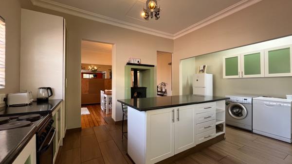 Step inside to discover a spacious 158 sqm interior adorned with classic architectural details. Gleaming hardwood floors, elegant pressed ceilings, and special lighting adorn the interior. An inviting entrance hall leads to an open-plan layout, seamlessly connecting the lounge and dining areas, both enhanced by a cozy fireplace. The modern kitchen boasts an island with bar seating, ample cabinetry, and integrated appliances including a washing machine and dishwasher, offering both functionality and style.