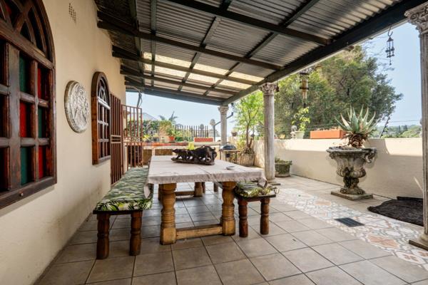 The residence sits higher up on the boundary, giving the covered patio (or stoep) an elevated outlook above the enclave and even Main Road East. From here, two sets of French doors open into flowing reception spaces two lounges, a dining room, and a TV room perfect for both entertaining and unwinding.