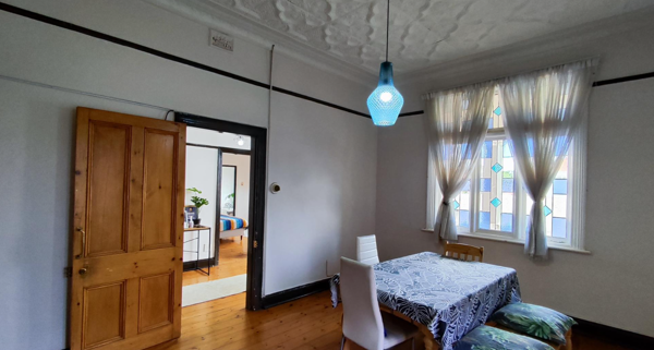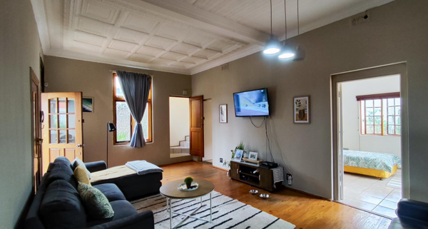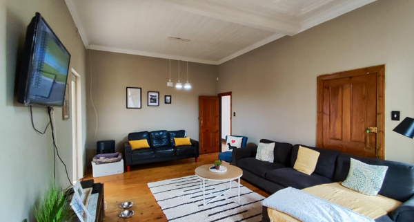 The living areas feature warm hardwood floors, distinctive high ceilings with coffered or plank detailing, and charming stained glass windows, creating an inviting atmosphere. The property comprises four comfortable bedrooms and two well-appointed bathrooms, providing ample accommodation for a family. An additional study offers a dedicated space for work or quiet reflection. The layout includes a versatile flatlet, enhancing the property''s appeal and potential uses.