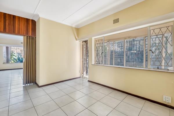 Entrance, lounge with fireplace, diningroom with adjacent enclosed patio. kitchen, laundry area. 3 bedrooms, one full bathroom, 2nd separate toilet. Established garden, irrigation, swimming pool. Domestic quarters. Double carport. Extra off-street parking. Burglar bars.