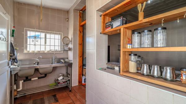 Well-appointed kitchen with gas stove, separate scullery, and laundry area