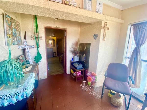 It has an entrance hallway that leads into the lounge that is spacious, carpeted and has ample natural lighting. The kitchen has built-in cupboards, tiled flooring and a 4-plate stove.