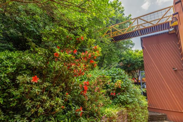 Bold and unapologetic. This home by renowned architect Cas Nel is a study in contrast and control. A strong, sculptural facade anchors the house against the koppie and welcomes you inside. Layered living spaces open dramatically onto your koppie, framing natural views across multiple levels. A bridge connects the house to the hill, giving you a private passage into nature, whether for quiet time alone or moments with family. Sunsets, city lights, and views all around combine, signalling the transition from day to night. The Patrick Watson designed garden is filled with indigenous trees which lead you through a forest up to the views from the top of your own koppie, allowing you to experience the beauty of the changing seasons.