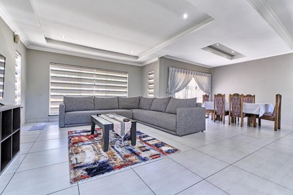 Discover this inviting 3-bedroom, 2-bathroom family home situated on a generous 1330 sqm erf in the desirable suburban area of Quellerina, Roodepoort. The property boasts excellent curb appeal with a prominent paved driveway leading to a double garage and ample additional parking for up to six vehicles. A well-maintained garden, featuring mature trees including a vibrant Jacaranda, enhances the welcoming entrance, complemented by a secure gate and privacy wall.