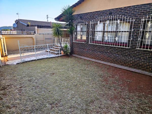 This massive family home has 3 large bedrooms with built in cupboards, open plan lounge and dinning room, 2 bathrooms, TV room, massive kitchen with lots of cupboard space. House fully tiled, back room closed off, garage, very spacious back yard with lovely garden and nice patio to enjoy Sunday afternoon''s. Very secured and fully walled. Extremely neat. Bonus 10 minutes to town and close to Soccer City stadium.