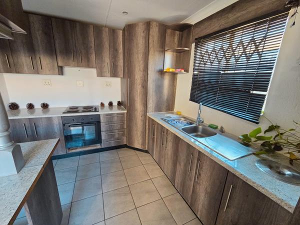 It is a corner stand house. Offering 4 bedrooms and 3 bathrooms. Two of the bedrooms are en-suite. It has 2 fully fitted kitchens and spacious lounge. It has a single garage. And ample parking space for about 7 vehicles. This property has 2 entrances, 2 geysers, cameras, 10 bar electric fencing and outside solar lights. It is located in a big stand with 308 square meters.