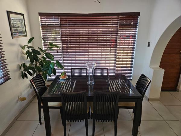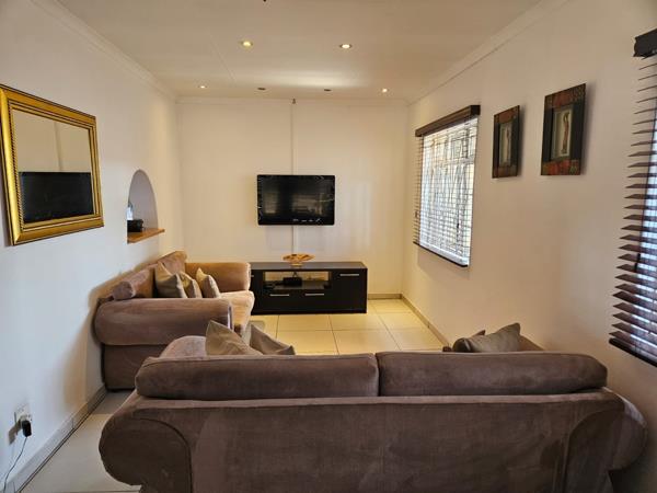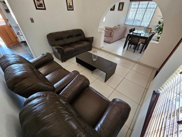 Down the passage lined with built-in cupboards, youll find three generously sized bedrooms. The main bedroom easily fits a king-size bed and offers plenty of built-in cupboards. The second bedroom features laminated flooring, built-in cupboards, and space for a queen bed, while the third bedroom, tiled for easy maintenance, fits a double bed comfortably.