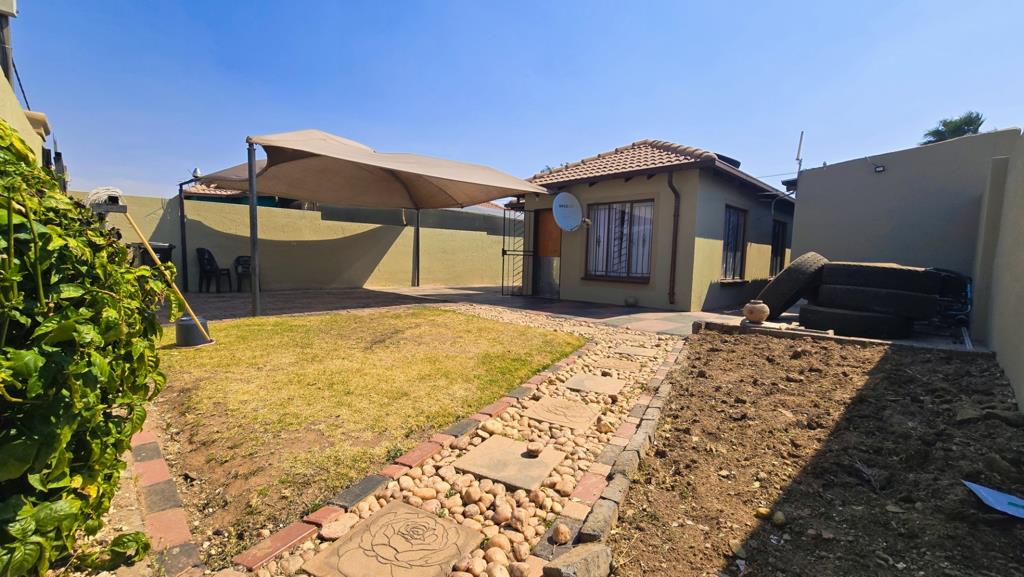 This property is in Riverlea Extension 3. The main house offers 3 bedrooms, all with built-in wardrobes, a lounge, fully fitted kitchen and full bathroom. There are 2 outside rooms sharing a toilet and a shower.