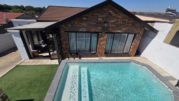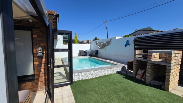 This property offers 2 spacious bedrooms. Open-plan lounge, dining area, and a sunroom. It offers a fully fitted kitchen and a full-bathroom with both a shower and bathtub. All the bedrooms have built-in wardrobes and wooden flooring. This family home has a pool, CCTV cameras, electric gate and electric garage door.