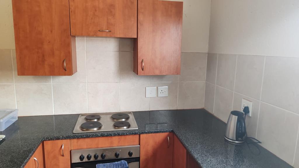A spacious kitchen with granite tops and space for 2 appliances. Loads of cupboard space.