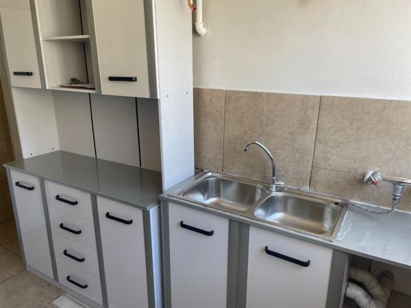 Inside, youll find two bedrooms with laminated floors and built-in cupboards, a neat kitchen with ample built-in cupboards and double sinks, a bathroom with a bathtub, basin and toilet, and a bright, airy lounge.