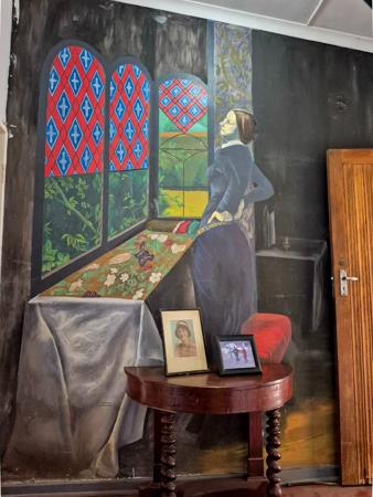The welcoming entrance is adorned with a stunning mural and opens into a sunlit open plan lounge and dining area.