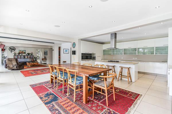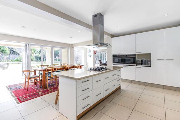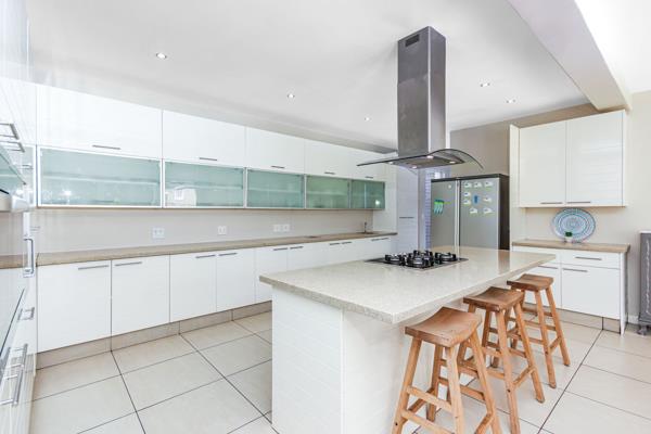 Upon entry, guests are greeted by a grand foyer leading to an expansive open-plan living space, seamlessly blending the lounge, dining area and a kitchen fit for a gourmet chef. Modernity meets functionality in the gourmet kitchen, complete with an adjoining scullery and vast pantry, catering effortlessly to culinary aspirations.