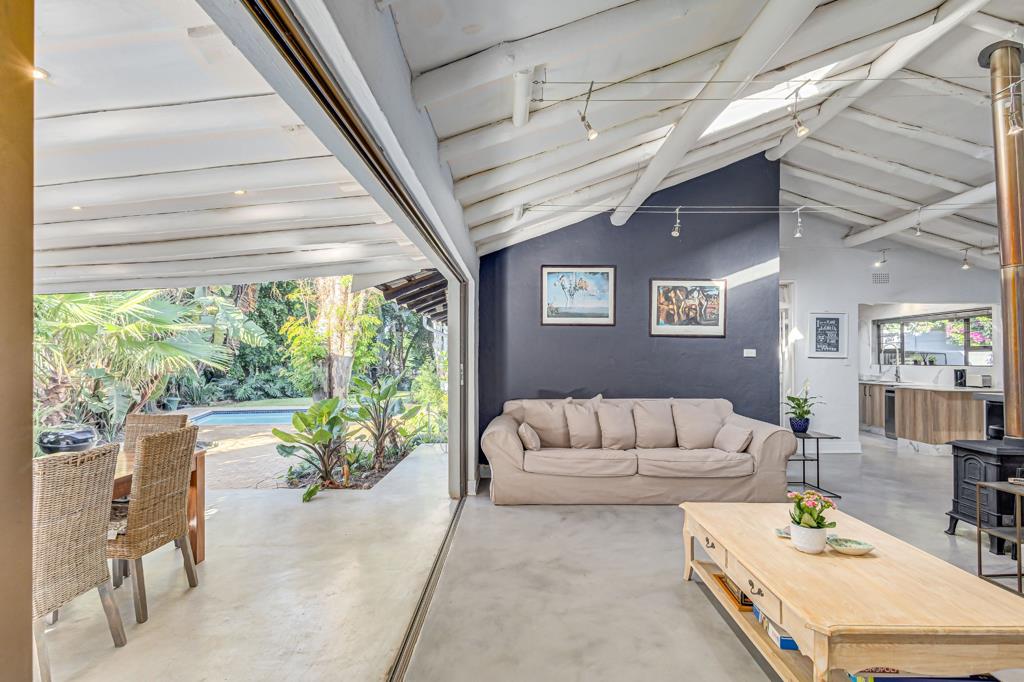 Outdoor Living: Stack-away doors open the lounge onto a stunning patio, leading to a well-established garden and sparkling pool perfect for family gatherings and relaxation.