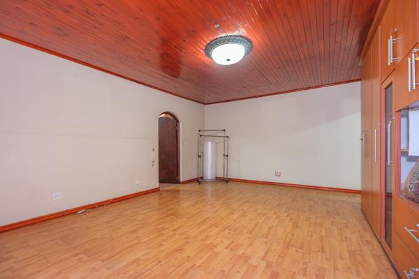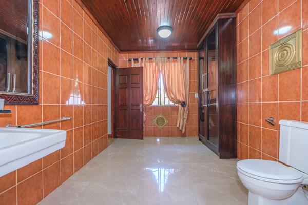 Discover this expansive 5-bedroom, 4.5-bathroom residence nestled in the suburban heart of Bloubosrand, Randburg. Boasting a generous 509 sqm under roof on an 836 sqm erf, this home offers ample space for comfortable family living. An inviting covered entrance with an attractive arch-top double wooden door leads into the interior, featuring two spacious lounges, a dedicated dining room, and a family TV room, all adorned with warm finishes like terracotta-style tiled flooring and distinctive wooden ceilings. The property includes two kitchens and a pantry, catering to diverse culinary needs.