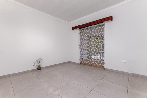 Enter into open plan reception areas with kitchen dining room and lounge. The house has new tiles throughout. The lounge leads offer doors leading into enclosed covered patio. The dining room also has doors leading into the garden. Three bedrooms with 2 bathrooms. The main bedroom with bathroom on suite is modern with shower. The second bathroom is outdated but functional. Wrap around garden with ample parking in the front with Hollywood garage entrance. Pedestrian gate. Storage hut at the back. The font entertainment area needs a little face lift like pots plants or tiling of the entertainment patio with concrete slab. Prepaid Electricity and Electric Fence. The home is neat and just needs your personal touch.