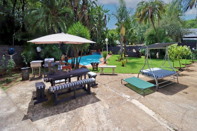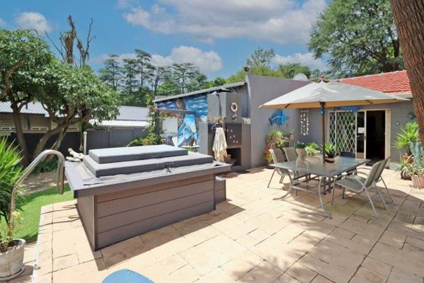 This unique home offers the following accommodation: Main Residence: Large tiled entrance hall leading into open plan lounge with wood burning fireplace, familytv room with fitted pub and sliding doors opening to tiled patio and outdoor entertainment area with built-in braai. Superb indoor and outdoor entertainment areas for those fun filled family weekends.