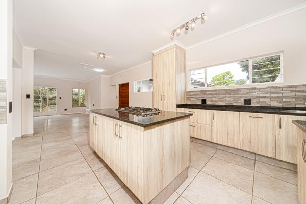 Nestled in a secure, boomed-off enclosure, this elegant 3-bedroom, 2-bathroom home (including a spacious main en-suite) offers the perfect blend of modern comfort and serene suburban living. Set on an expansive 1,487 sqm stand, the home features a stunning open-plan kitchen with granite countertops and a stylish centre island, seamlessly flowing into the dining area, TV lounge, and entertainment space- perfect for hosting or relaxed family living. The sleek, fully tiled interior is finished with contemporary fittings, including a sophisticated bathroom with black accents and a frameless glass shower. Two garages provide ample secure parking, and large windows flood the home with natural light, enhancing the warm, modern aesthetic.