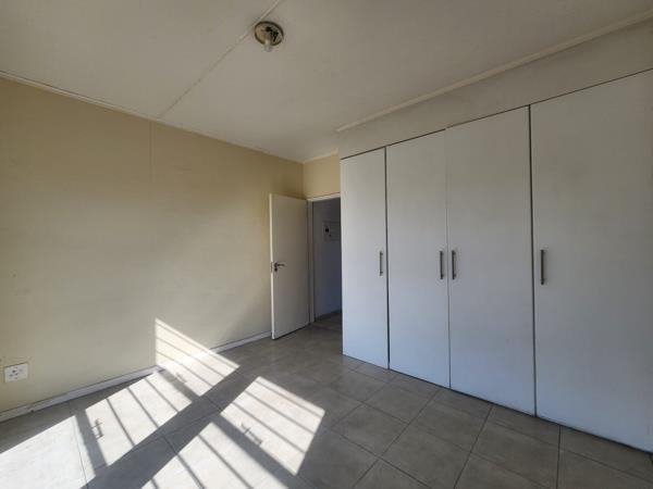This stylish sectional title unit offers a spacious bedroom with fitted wall cupboards and a neat bathroom with a toilet and bathtub.