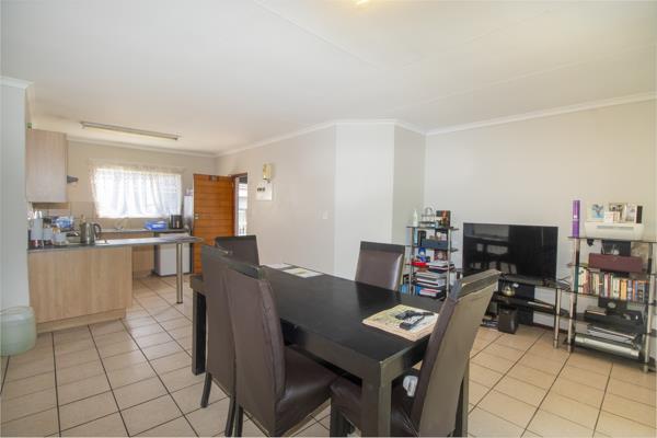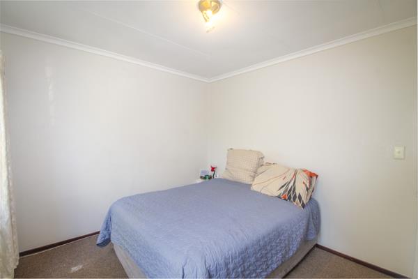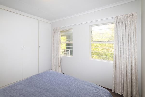 Discover this inviting property featuring a functional, tiled kitchen complete with a stove, oven, and extractor fan. It offers practical elements including a double sink, designated fridge space, an electric meter, plumbing for one appliance, and a convenient breakfast counter. The tiled living area is bright and opens directly onto a private balcony, perfect for fresh air. The main bedroom is carpeted for comfort and includes three built-in cupboards, while the second bedroom offers ample storage with two built-in cupboards.Bathroom includes a bath, separate shower, toilet, and basin.