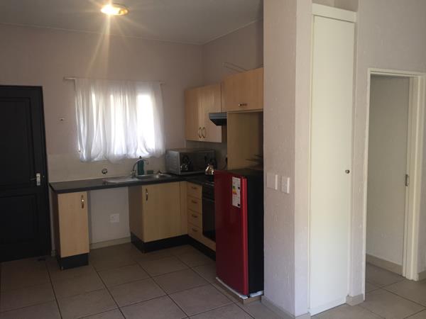 Modern kitchenette with stove and built-in cupboards