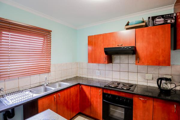 Location. Location. Location. Ferndale Ridge/Linden EXT border. Good size apartment of 2 bedrooms/2 bathrooms on ground floor. 24/7 security guard at the gate. Absolutely immaculate just painted apartment. Kitchen with granite tops. Main bedroom is double size with en-suite bathroom (shower, basin, toilet). Second bathroom is full bathroom bathtub, shower, basin, toilet.. Covered patio with Built-in braai. Splash pool in the complex.