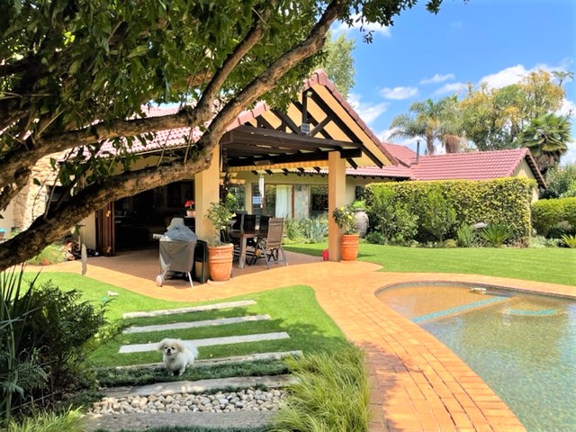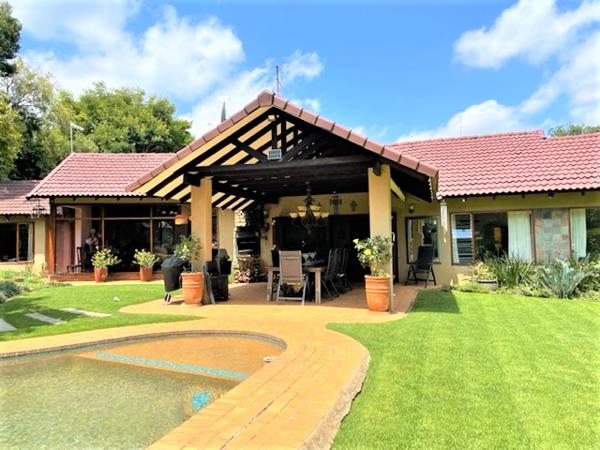 This home is so character filled with gorgeous manicured gardens including water features fishponds ,sparkling swimming pool as well as a jacuzzi all fed by a borehole