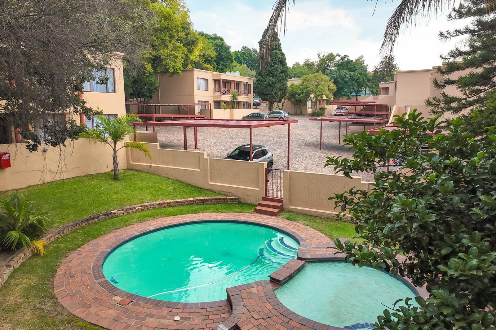 Large swimming pool. Braai area. Lovely communal garden with big trees.